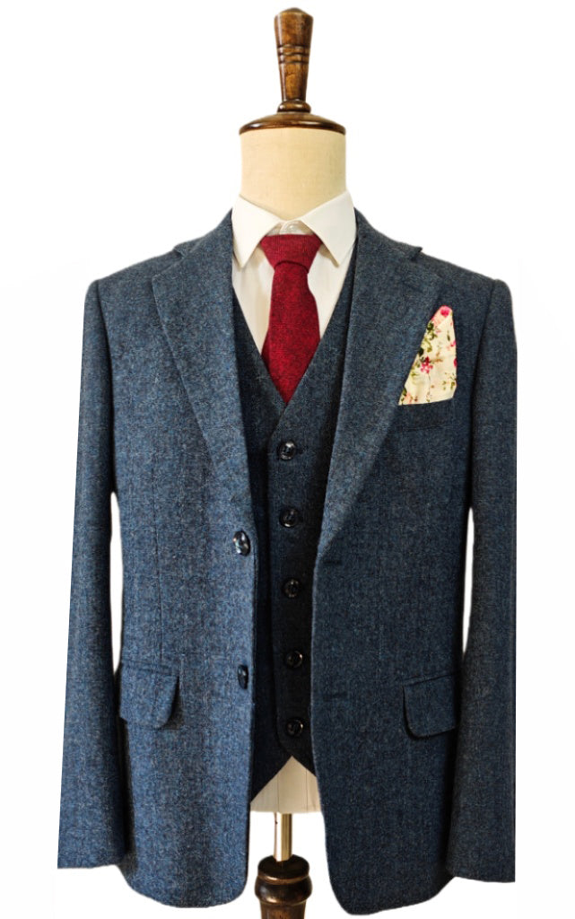 BLUE HARRIS TWEED 3 PIECE SUIT