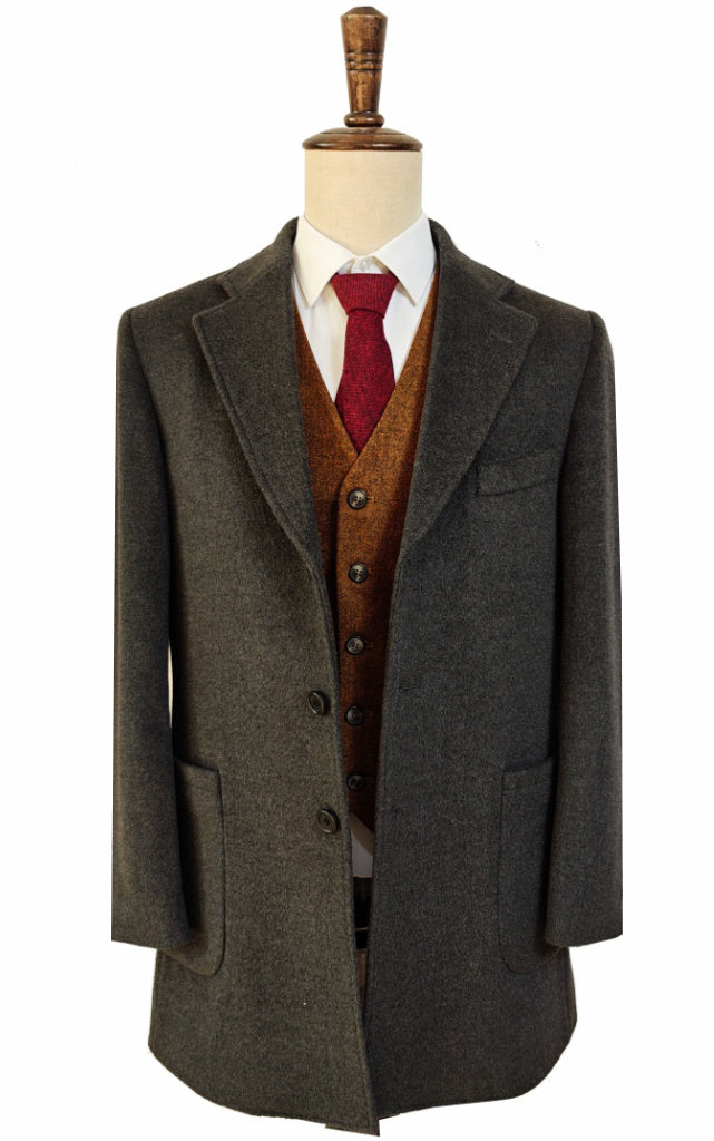 Constructed from high-quality wool blend fabric, offering excellent warmth while maintaining breathability. The fabric's delicate flecked texture is meticulously finished, creating a subtle yet luxurious visual effect. Smooth interior lining ensures effortless wear and comfort.Styling Suggestions:This overcoat is the perfect outerwear choice for autumn and winter seasons. Pair it with the brown waistcoat, crisp white shirt, and burgundy tie as shown for a richly layered formal business look, or wear it over casual trousers for an effortlessly elegant urban style.Ideal Occasions:Business meetings, formal dinners, daily commutes, social gatherings BDtailormade presents exquisite bespoke craftsmanship and timeless classic design, making every outing an expression of personal style.