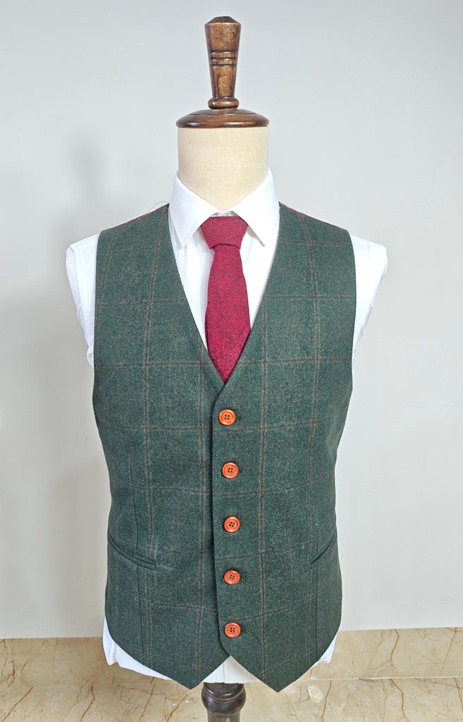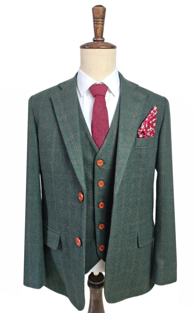 From important business meetings to wedding celebrations and formal evening events, this three-piece suit delivers unparalleled distinction. The unique green overcheck pattern adds character and visual interest while maintaining professional refinement, making it a standout addition to any discerning gentleman's wardrobe.