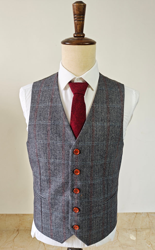 The Grey Herringbone Plaid 3 Piece Suit blends timeless British elegance with a modern, tailored silhouette—an essential choice for the modern gentleman.